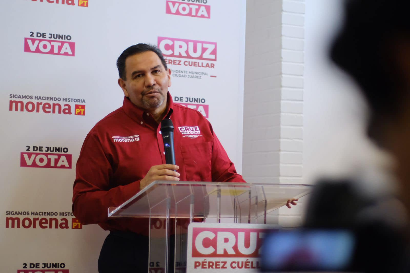 Ciudad Juárez.- Esta mañana, el candidato a la Presidencia Municipal de Ciudad Juárez, Cruz Pérez Cuéllar, convocó a una conferencia de prensa para exponer sus propuestas y resaltar los logros alcanzados durante su gestión.