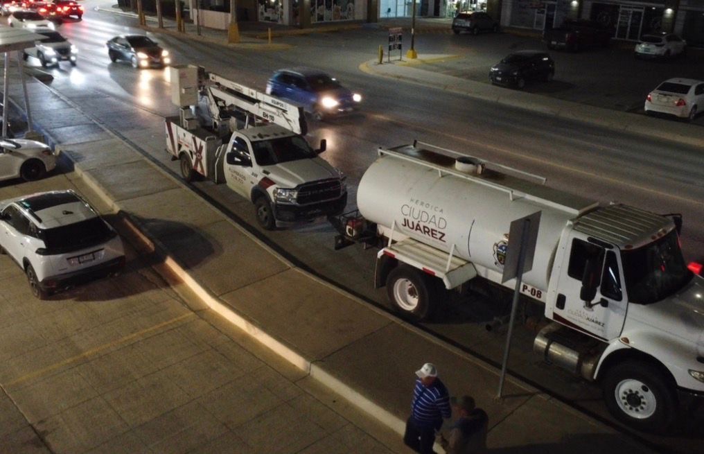 Ciudad Juárez.- El Presidente Municipal Cruz Pérez Cuéllar dio el arranque a la edición número 38 de la Cruzada Nocturna, realizada anoche en el corredor comercial Valle del Sol, donde dependencias operativas de Servicios Públicos intervinieron un tramo de 2.6 kilómetros, desde el bulevar Francisco Villarreal Torres hasta la calle Júpiter.