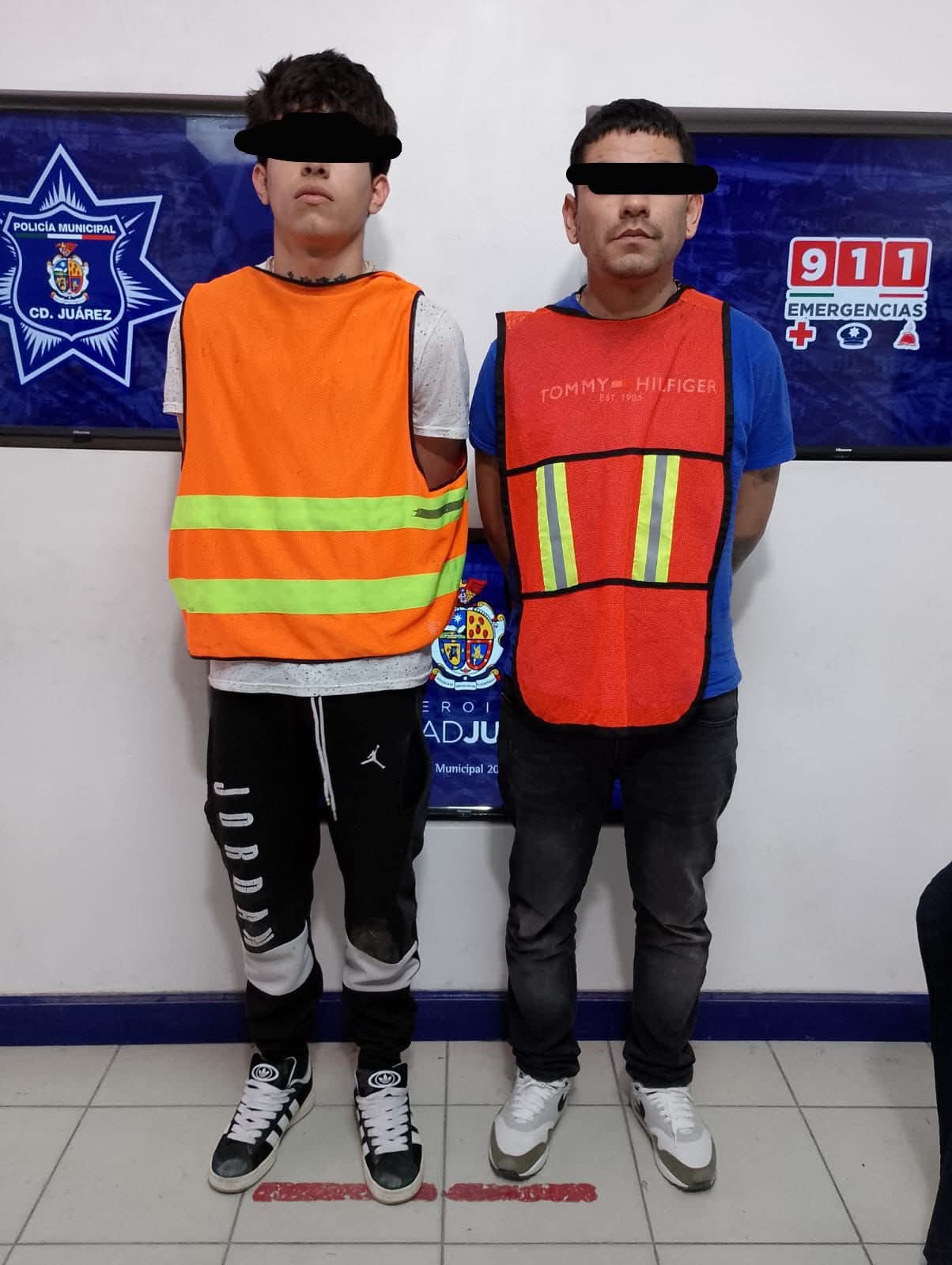 Ciudad Juárez.- Elementos de la Secretaria de Seguridad Pública Municipal detuvieron a César Antonio M. S. y Natanael Abisai V. L., por su presunta responsabilidad en el delito de homicidio y contra la ley federal de armas y explosivos.