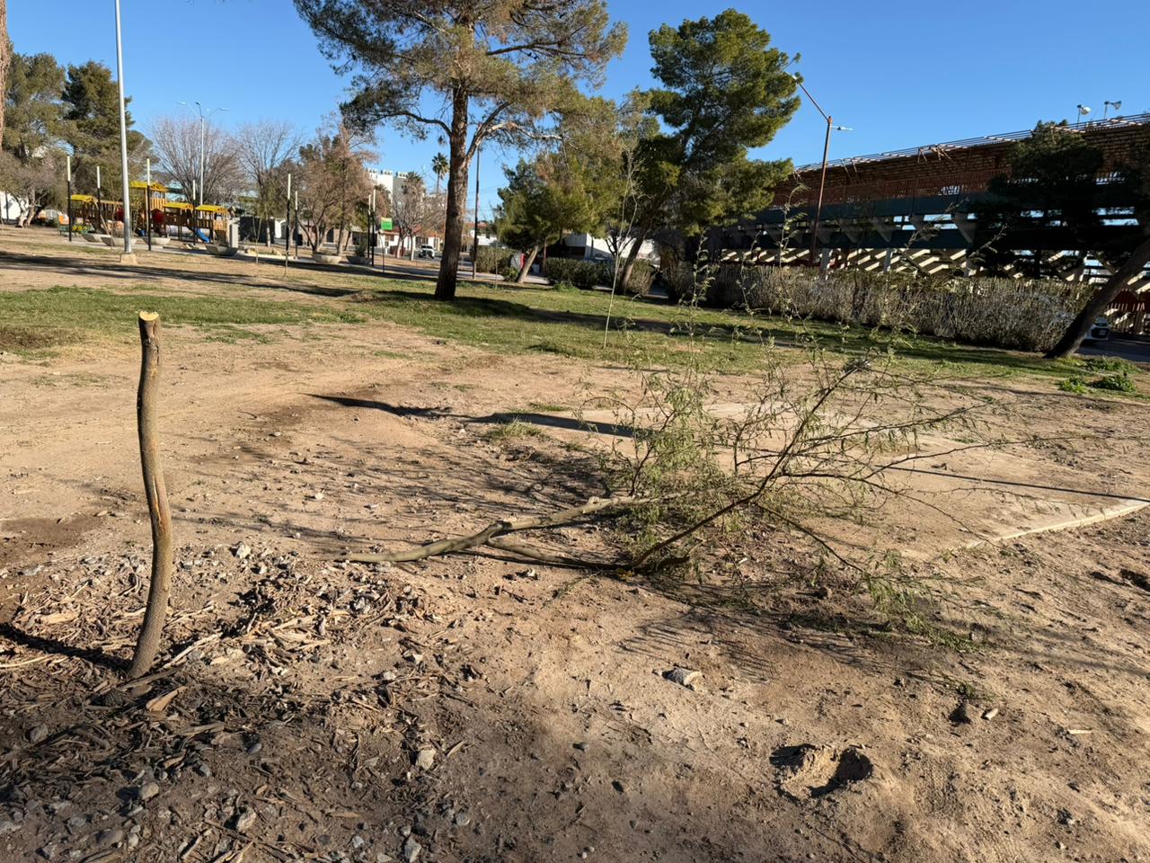 Ciudad Juárez.– Durante recorridos de supervisión, personal de la Dirección de Parques y Jardines localizó un árbol severamente dañado en el parque Borunda, el cual presuntamente fue arrancado de manera intencional, ya que presentaba señales claras de haber sido quebrado.