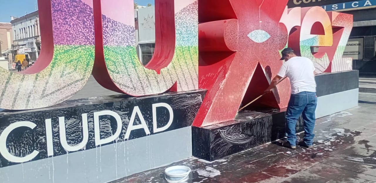 El titular de la dependencia, Gibran Solís Kanahan, informó que actualmente se trabaja en el pintado de contenedores de basura ubicados sobre la avenida Juárez, así como en el remozamiento de las letras monumentales de “Juárez”, principalmente en su parte posterior.